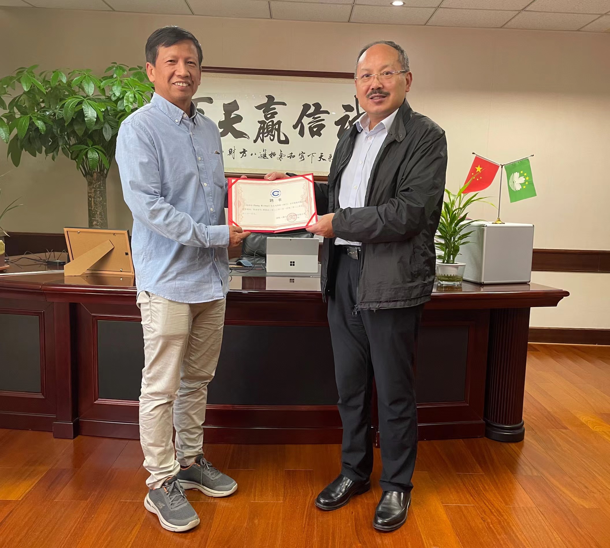 鄭明權(quán)副教授參觀了國檢(澳門)衛(wèi)生檢測有限公司的臨床分析實(shí)驗(yàn)室及放射實(shí)驗(yàn)室,在會(huì)談上,雙方就新冠病毒核酸檢測、基因治療、臨床病理檢測等項(xiàng)目進(jìn)行了深入的交流和探討。并就下一步開展臨床實(shí)驗(yàn)室檢測業(yè)務(wù)達(dá)成了初步共識(shí)。座談結(jié)束后我司向鄭明權(quán)副教授發(fā)放了聘書,聘請他擔(dān)任國檢(澳門)衛(wèi)生檢測有限公司的醫(yī)學(xué)顧問。